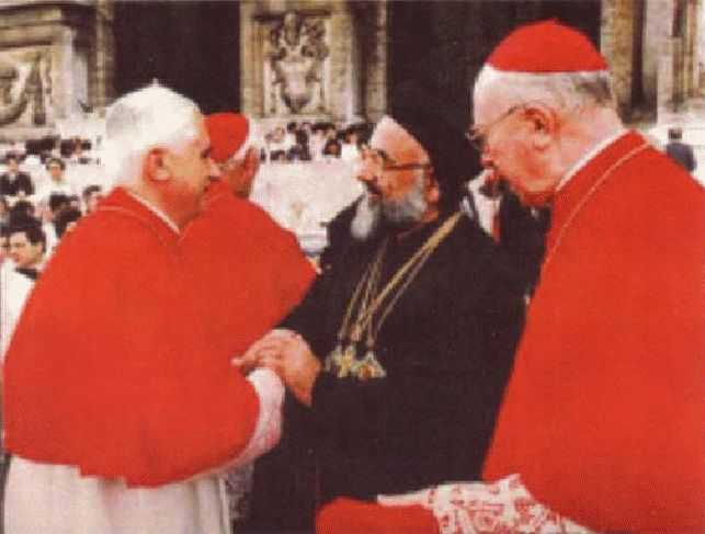 Ratzinger fut un expert ayant activement oeuvré au conciliabus de Vatican II. Il s'agit d'un hérétique d'une intelligence maléfique redoutable. Il fut un promoteur du nouvel ordre mondial judéo-maçonnique et antichrétien, et ses liens avec la franc-maçonnerie sont avérés.